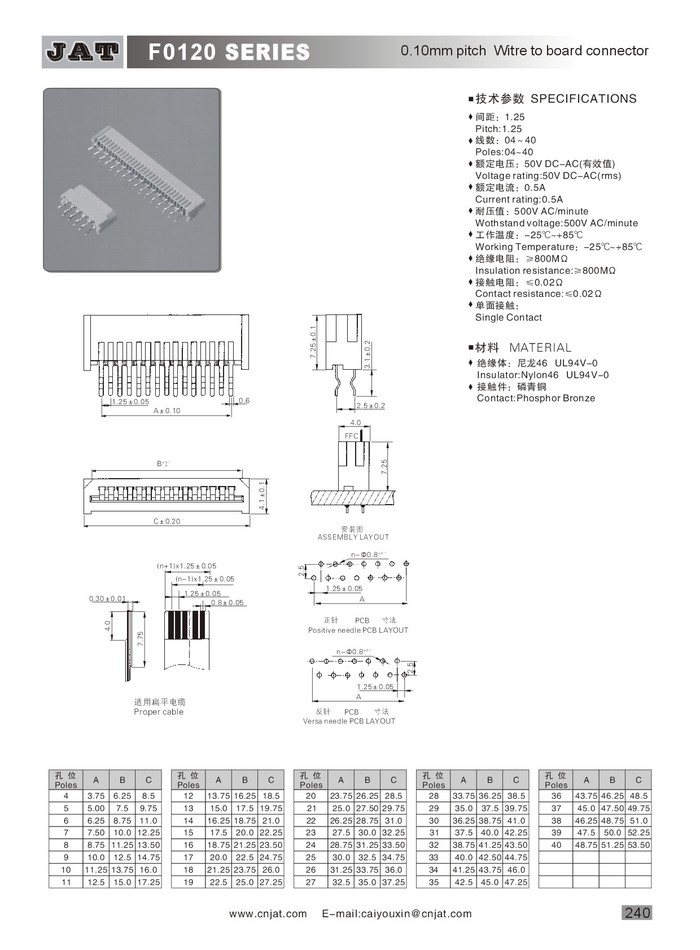 •  F0120 1.25係類貼(tiē)片(piàn)插件 連接器