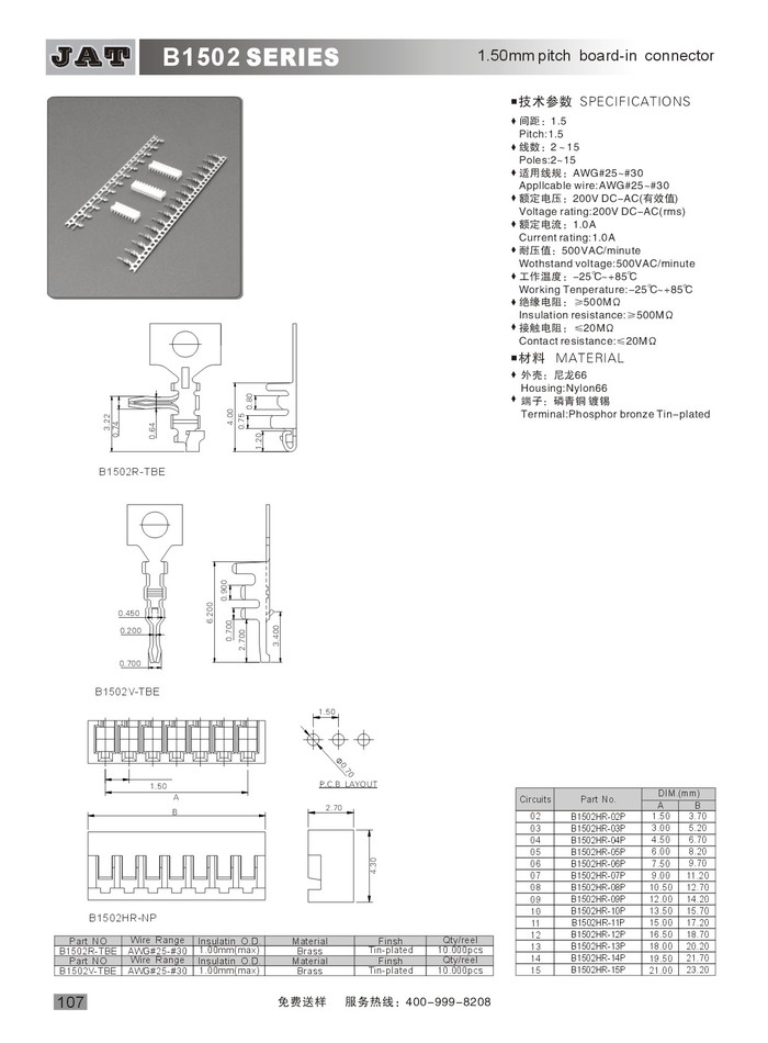 •  JAM JZ 1.5連接器 B1502