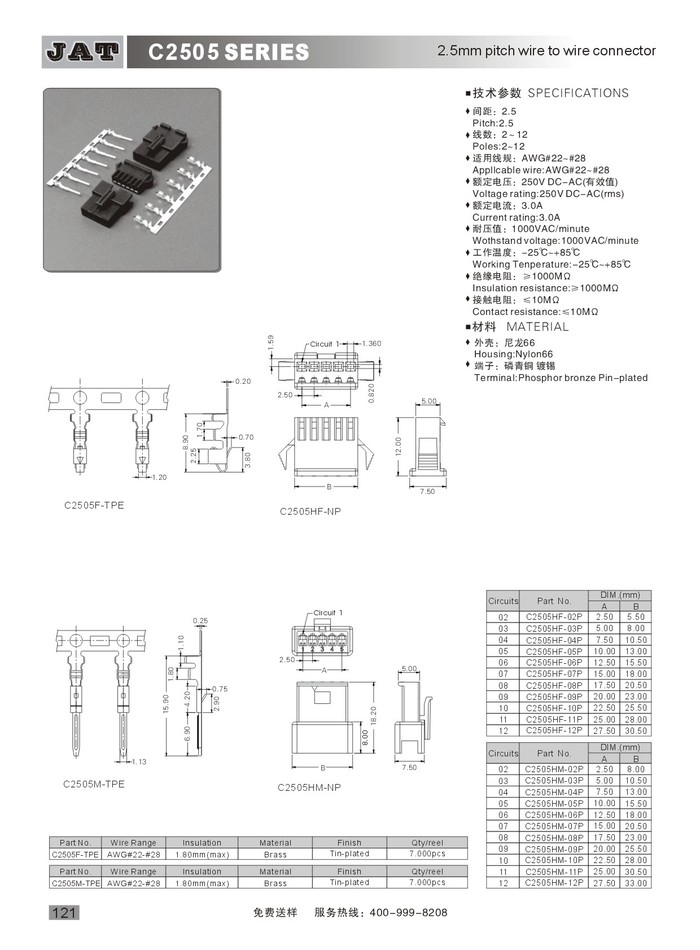 •  JST SM連接器 C2505