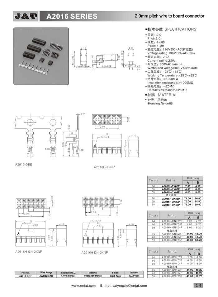 • 杜邦2.0連接(jiē)器 A2016