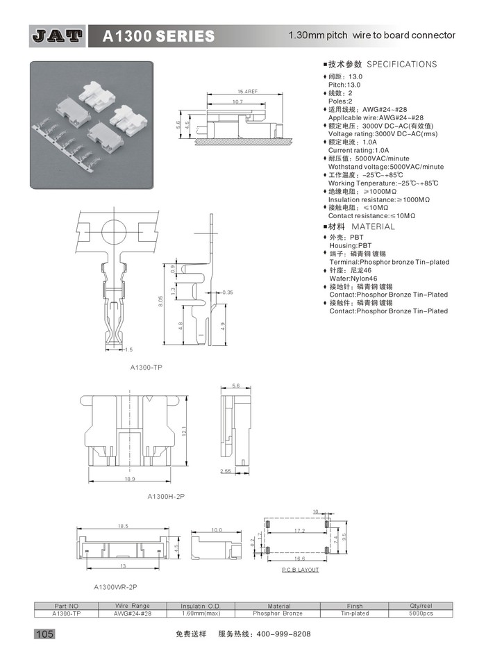•   JST顯示器連(lián)接器 A1300
